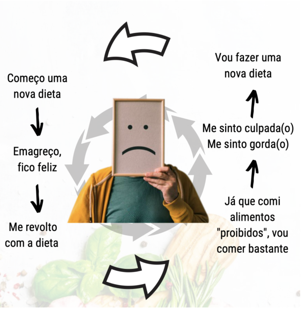 O ciclo do fracasso eu desenvolvi pensando em uma forma de ilustrar para os pacientes dentro do consultório as dificuldades que eles vinham tendo nas inúmeras dietas anteriores que haviam feito.